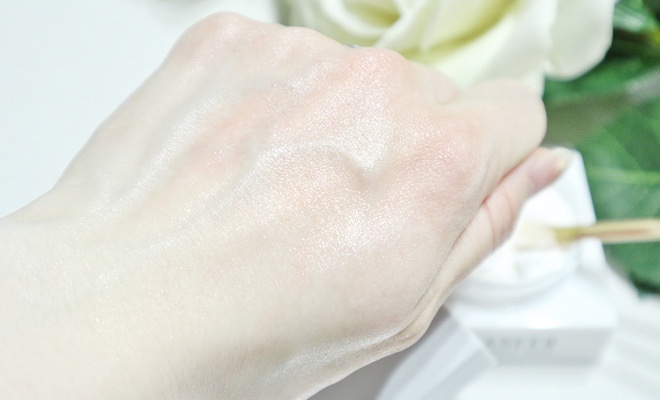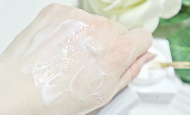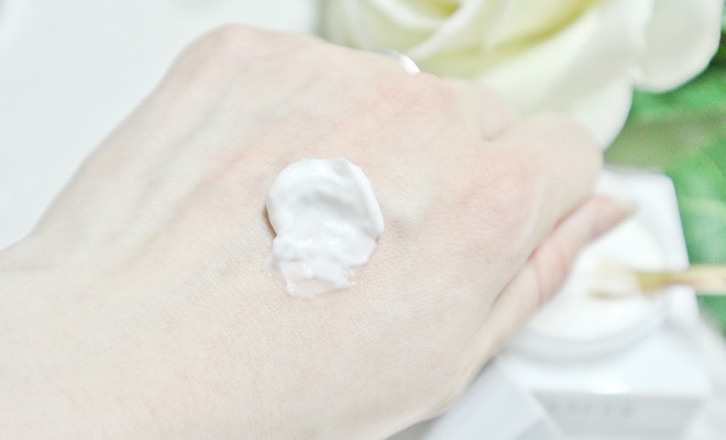 中身は真っ白なクリームで、みずみずしいテクスチャーでお肌への伸びは抜群!