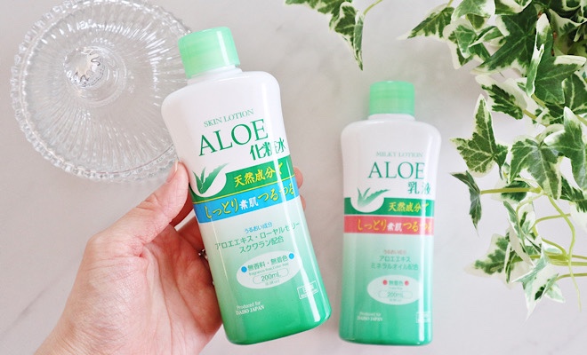今回はダイソーで販売されている、アロエ化粧水と乳液を体験してみました!