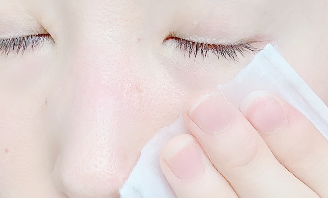 - 顔全体に優しくなじませるようにふき取る
