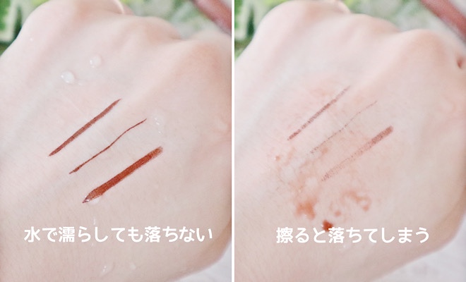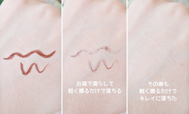 スキルレスライナーはウォータープルーフですが、お湯で簡単に落とすことができます。