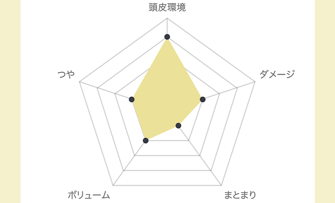 こちらは私の診断結果です。五角形が大きくなるほど良い状態なので、私の髪状態はとても悪いということがわかりますね…