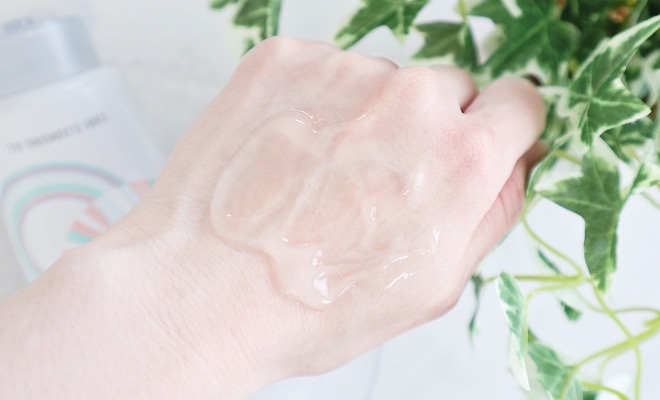 トロンとしたジェルはお肌への伸びが良く、スルスルとなじんでいきます。