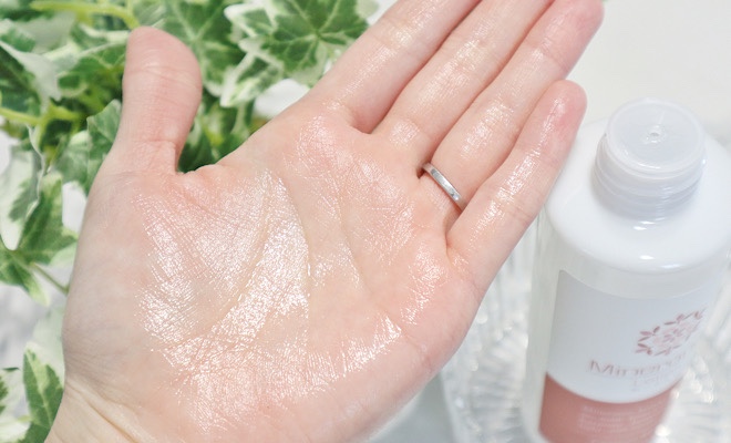 化粧水を出してみると透明でシャバシャバとしており、まるで水のようなテクスチャーです。