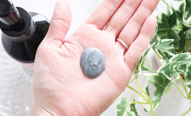 竹炭を配合しているので、洗顔料も濃いグレーをしています。