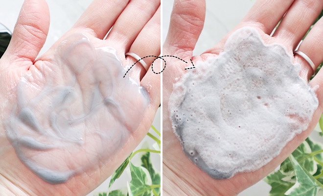 軽く水気を拭き取ってお肌に洗顔料を伸ばすと、徐々に泡状に変化していきます。