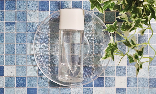 化粧品のボトルは丸い形状のものが多いですが、雪肌精クリアウェルネスのフリータイプは水の雫がモチーフとなっており、有機的な曲線のフォルムになっています。