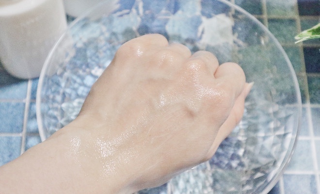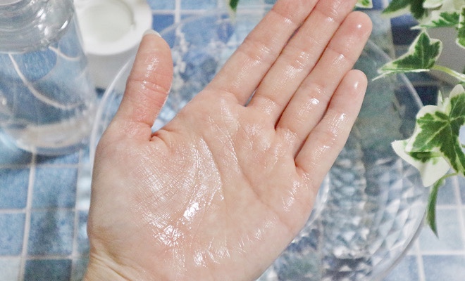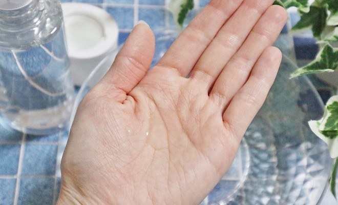 透明の化粧水で水のようにシャバシャバしていますが、とてもなめらかな質感で肌なじみが良いです。