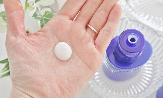 乳液を取り出してみると、生クリームのように真っ白でとろりとしたテクスチャーをしています。