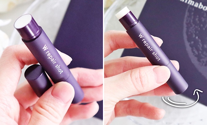 紫色のスティックが特徴の、シマボシのWリペアショットを乾燥肌ライターが体験してみました!